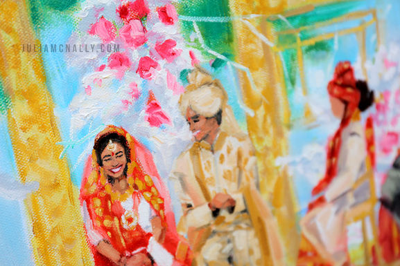 My standard live event packages include one medium or large painting. It is also possible to have two smaller paintings created onsite (such as one of the ceremony and one of the reception) or one live painting, with other paintings completed based on photographs.